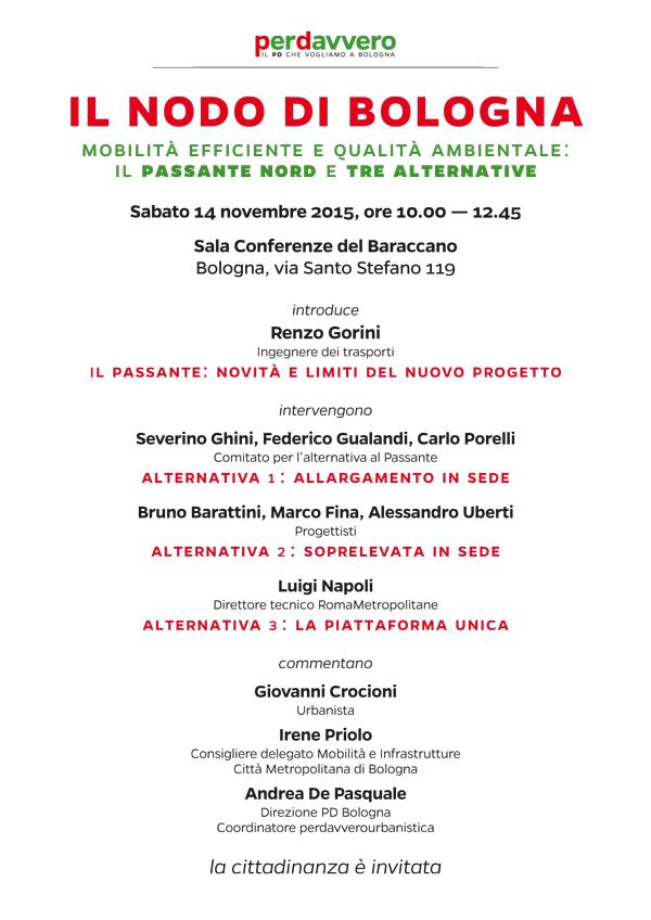 Mobilità efficiente e qualità ambientale: il Passante Nord e tre alternative Sabato 14 novembre,...